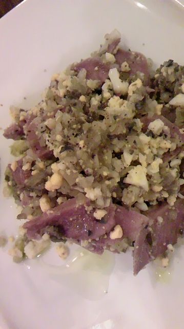 豚舌のボリート、ピクルスと卵のソースあえ