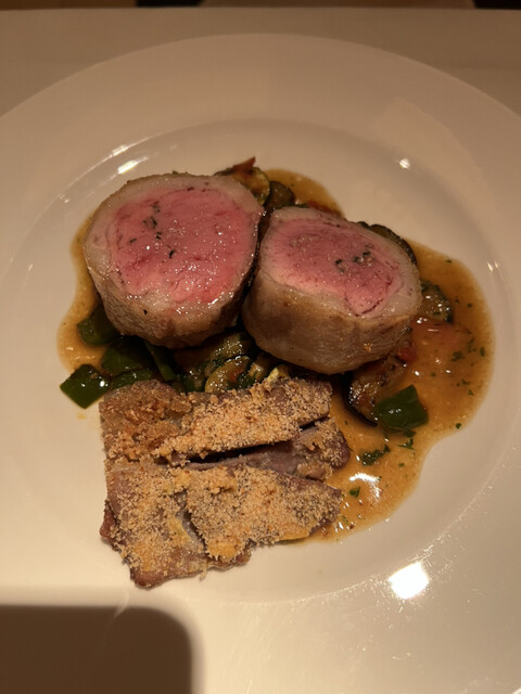 メインにヤガラのローストとラムのローストを注文した。ヤガラは身が厚く、しっかりとした身であり、身の甘さ、香りも十分。さすが時期のものである。