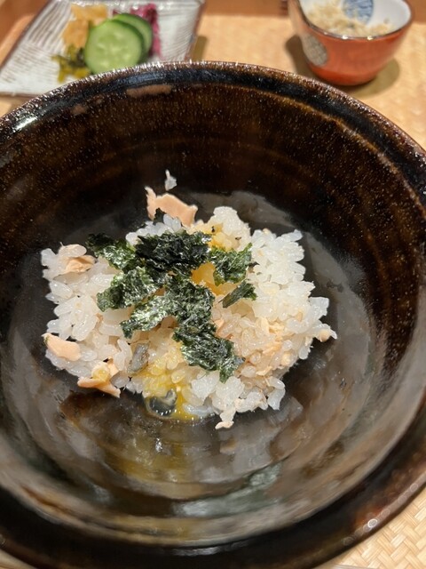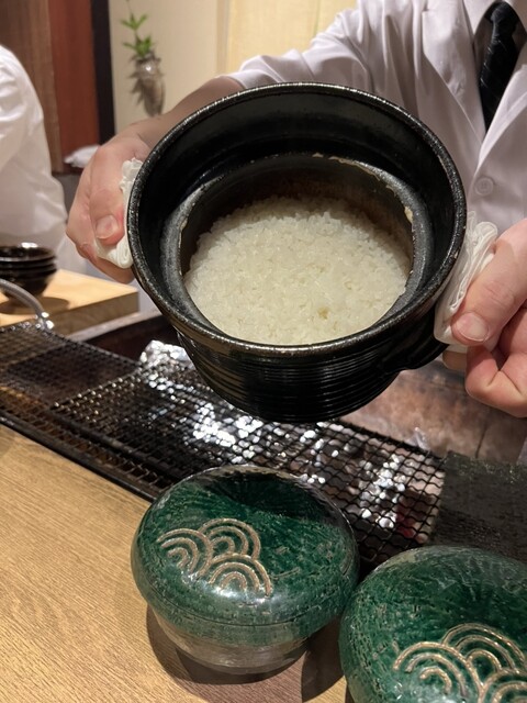 お米が美味しい。甘さがさっぱりとしているので、ご飯のお供と一緒に頂くと、これだけでもいいくらい。炊き込みご飯も当然美味しい。オオマスの炊き込みご飯は出して頂くときに卵黄を混ぜてくる。これが良く合う。レンコンと油揚げは出汁の風味、レンコンの甘さと油揚げのコクがバランスよく、これが一番好きかも。