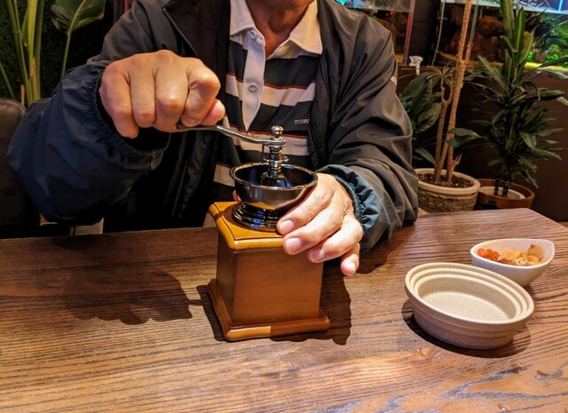 コーヒー¥900:品種を選んで自分で挽き、ドリップするので、コーヒー好きには嬉しいでしょう。今回はエチオピア。一杯だけでお代わりは無し。相方は普通のコーヒー¥500