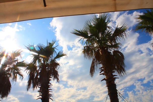 ヤシの木漏れ日が眩しく肌を照りつけ