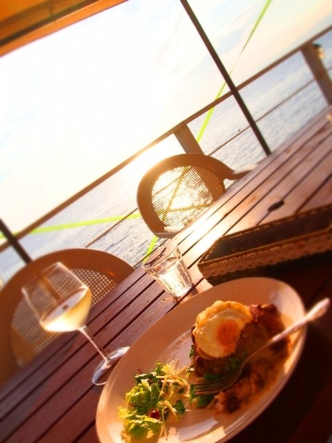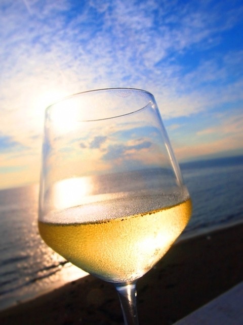 白ワイン ¥500 でおひさまにかんぱ~い。(´0ノ`*)