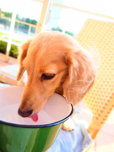 とってもケアがきめ細やかな女性スタッフにお水を頂き、愛犬ティアラもメロメロ~ン♥
