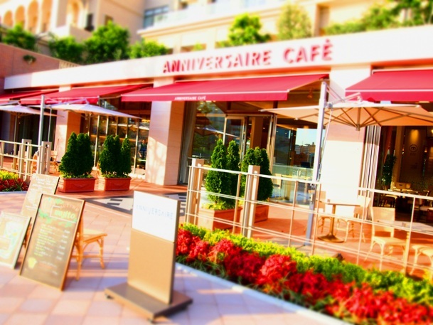 だぁ————————い好きな表参道のカフェが♥だぁ————————い好き♥なみなとみらいに進出してきたと聞いて。。。こりゃ、いてもたってもいられません~~!ε=ε=ε=ヾ(*~▽~)ノアニヴェルセルカフェ みなとみらい住所 神奈川県横浜市中区新港2-1-4営業時間 モーニング 9:00~11:00(土日祝日) ランチ 12:00~15:00(平日) 11:00~15:00(土日祝日)ティータイム 15:00~17:30 ディナータイム 17:30~22:00(LO 21:00)定休日 火曜日TeL 050−5872−9515【予約専用番号】045−640−5188【お問い合わせ専用番号】※わんこはテラス席ウェルカムOK♥それは台風一過が去った秋晴れの午後。。。(´0ノ`*)コスモワールドの裏側に、どどぉーん!!と彗星のごとく現れた、ひと際目立つ白亜の洋館。さすがウェディング仕様なだけあり、どこをとっても・・・クオリティーが高すぎっ!!!∑(゜Д゜)【※トイレも必見】ちゃんと店前にイタリアの兵隊さんみたいなカッコイイ門番も居て運河沿いにそびえ立つチャペル併設のカフェは気持ちの良いオープンエアー。ランドマークを独り占めできる絶景テラスは最高の演出(●´ω`●)ゞティータイムの16:00に着いたので、とりあえずアイスカフェオレをオーダー♥それにサラダと茄子のトマトパスタを単品でオーダー。各¥1300うん、お味も言うまでもなく、素材の旨みを生かしたバランスのとれた逸品(〃∇〃)ちょうどときはサンセットタイムに突入~。とってもケアがきめ細やかな女性スタッフにお水を頂き、愛犬ティアラもメロメロ~ン♥みなとても親切だし、何度となく話しかけてきてくれる優しさにわん連れが多いのも納得。うん。しかもここだけはまるで時間が止まっているかのような静けさに、思わずマッタリモード。。(´0ノ`*)まるで外国に居るかのよう。ウェディングの鐘とともに、どっからともなく聞こえてくるシアワセな歓声とともに・・・日が落ちたアニヴェルセルは、まるでクリスマスのようなイルミネーションに包まれましたとさ。。。(´0ノ`*)