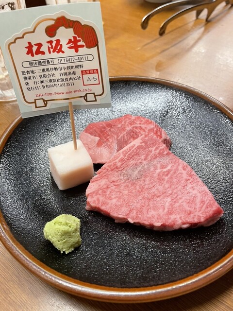 土曜日は予約できないとのことなので、5時頃に訪問したら待たずに入れた。いくつかの肉を注文したが、松坂牛ヒレが美味しかったので2人で4つ注文。再訪してもよい。