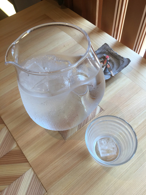窓の格子の細工に関心しながら、水をいただきます。水指しもセンスいい!!(◎_◎;)