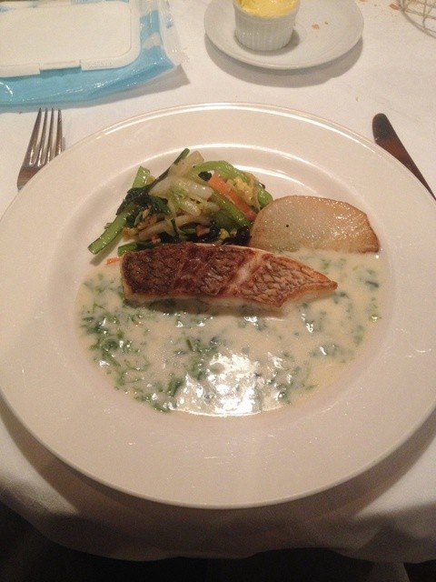 ⇒鮮魚のポワレ アサリ風味生のりのソース(私チョイス)