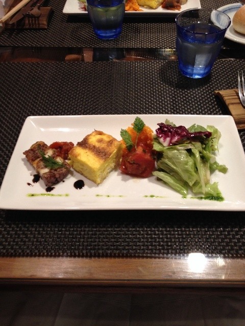 前菜にしてはボリュームあります。4種の盛り合わせとなっておりますが、それぞれ違った味わいがあります。メインは二皿とも肉料理でしたが、非常に柔らかく、備え付けの野菜も豊富で見た目もよいです。味付けは比較的しっかりめです。ワイン(私は飲みませんが)を飲む人にとってはとてもよく合うと思います。大変おいしかったです。