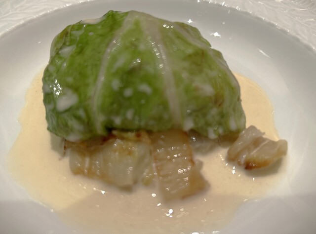 カナダ産オマールエビの白菜包み、クリームソース