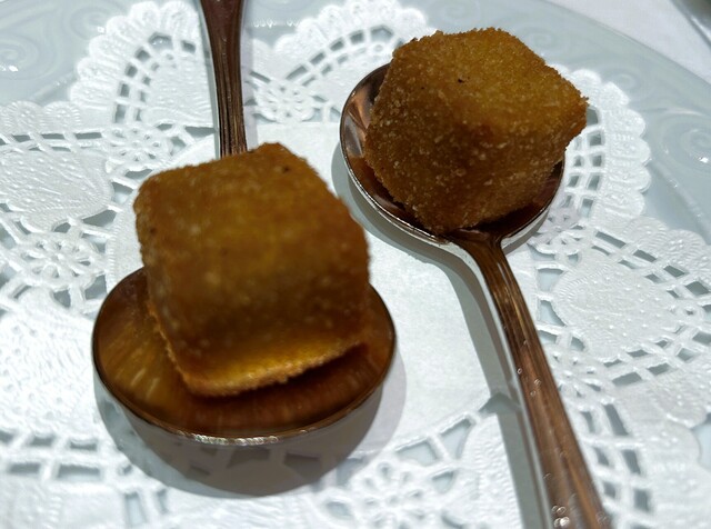 フォアグラとトリュフの温かいソースを一口で。