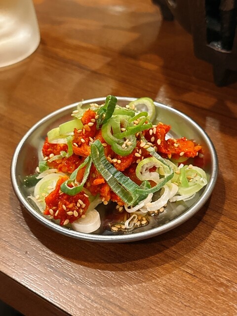 本場のチャンジャは、本場のとついているだけあって激うま。コリコリ刺しも韓国の味で美味しい。残ったタレとねぎだけでも美味しかった。
