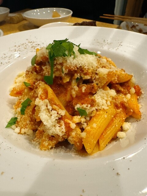 ペンネボロネーゼも到着。見ただけで美味い 笑