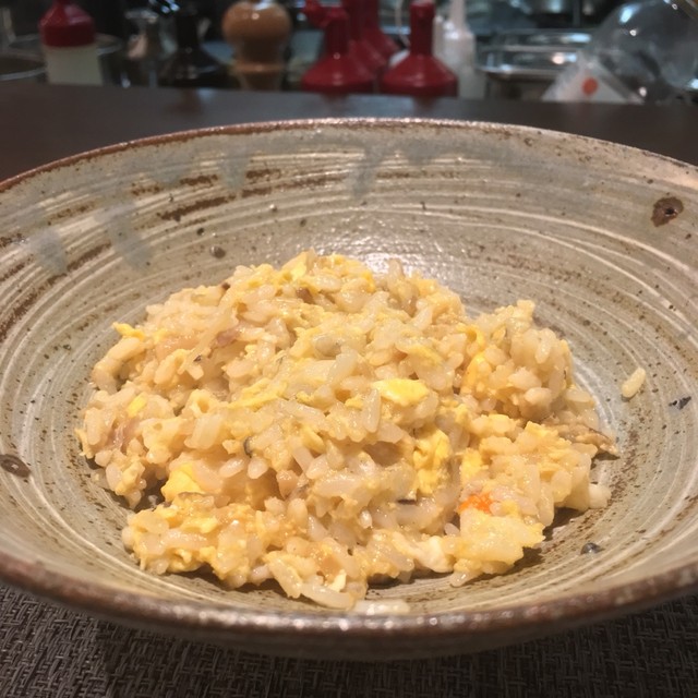 叉焼とホウボウで作った自家製ハムユイのチャーハン