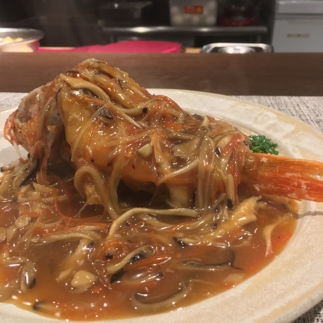 仙台に行くにあたって、まずKUROMORIのカレンダーをチェックしてから予定を立てたというくらい最近ヘビロテでお世話になっている冨店。昼は嬢王様と戯れ、夜は黒森中華を堪能する。テンションが上がってしかたありません。ただ、タクシー代がかかるけど…。夜の口開けと同時に入店し、スタートです。まずは、前菜盛り合わせを。海月、齋藤豚の叉焼、野菜の湯葉巻き、野田鴨の焼き物、活アイナメの昆布〆、白魚の椒塩炒め。いつもは定番、フカヒレの姿煮ですが、来店記録してるので変更してくれました。気仙沼から直送してる青鮫手鰭の上湯蒸しスープ。塩は入れてません。深い味わい。次に地鶏のパリパリ揚げが出るんだけど、これは感動レベルだね!豪華共演です。スッポン、フカヒレ、ナマコの醤油煮込み。メインに夢カサゴの揚げあんかけ。お食事は、リゾットチャーハン。デザートに、杏仁豆腐 宮古島マンゴーソース、オーギョーチー 宇和島 サンギネロ種ブラッドオレンジ、月餅で終了。ごちそうさまでした。