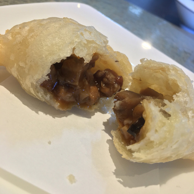 焼き鴨、蒸し鮑、どんこ椎茸、宮城の筍が入った五目揚げ餃子