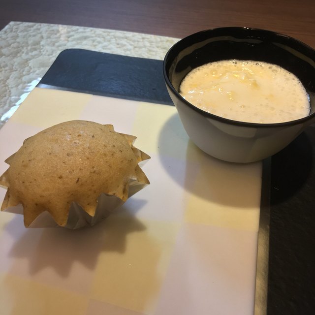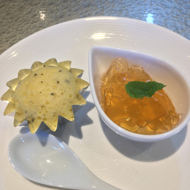 胡麻団子 ココナッツミルクプリン 数種の柑橘の皮マーマレードソース