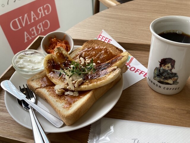 自家製キャラメルバナナトーストとコーヒー