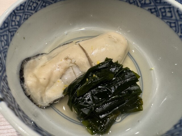 阿古屋貝(長崎・平戸)、黒舞茸と三つ葉の茶碗蒸し ◎◎