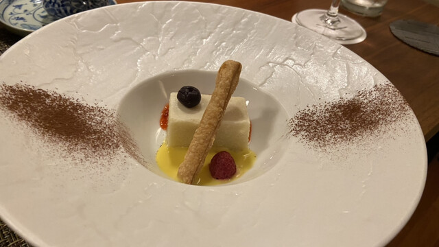 ウェルカムドリンクのシャンパンと紫芋の屑饅頭