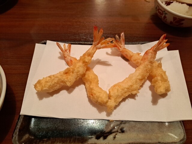 大将が揚げた天ぷらを直ぐ様女将が僕達のテーブル席へ。