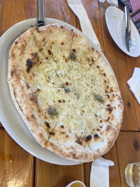 4名で訪問し、マルゲリータ、タルトゥーフォ、ドラータ、名前を失念(はちみつをトッピングするピザ)