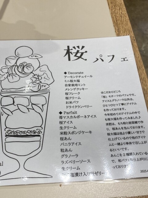 見た目も舌も気持ちさえもすっかり春に包まれるパフェです。