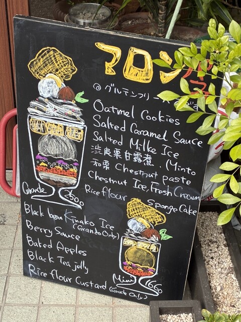 渋皮煮、マロンクリーム、塩ミルクアイス、塩キャラメルソース、ラズベリー、オートミールクッキー