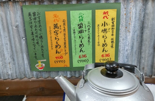 「小鳩らーめん (税込み 700円)+大盛り (+110円)」
