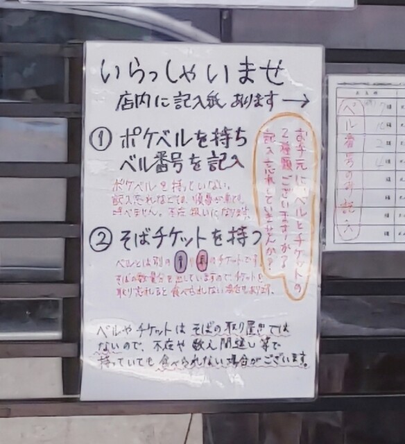 入ってポケベルと蕎麦の種類を表すプラチケットを