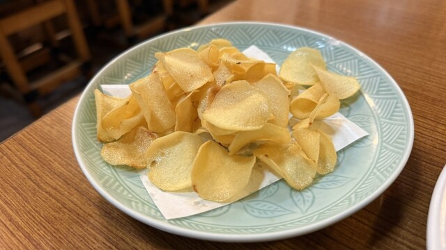 名物鶏の半身揚げはカレー味。鶏ホルモン野菜いためやクワイのチップス、ねぎや椎茸、岩のり焼き、魚やカニもかきのもとももちろん美味い。