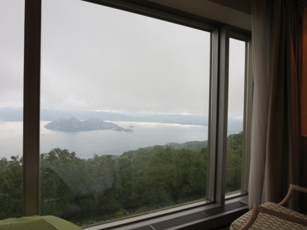 ホテルからの眺めも、最初はかろうじてぼんやりかすむ洞爺湖を眺められたけど、