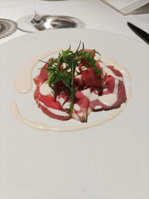 塩加減も絶妙。トレンドだともっと優しい味わいかもしれない。これまた喉が渇かない、しかしミネラルしっかりしたワインがススム一塩の妙。