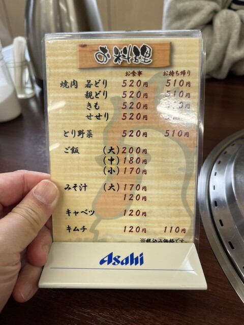 若どり、親どり、きも、せせりの焼肉メニューと、とり野菜(スープ)を注文。