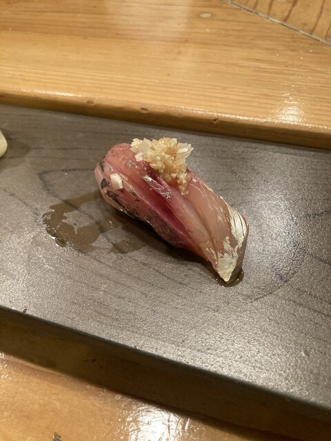中盤に出てきたマグロ赤身や大トロはもちろん素晴らしいんですが、鯵が出た途端に二次曲線的にテンション爆...