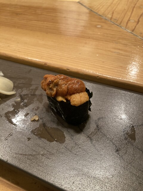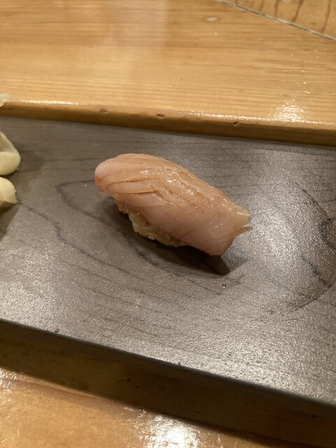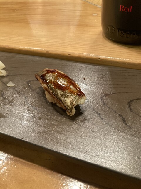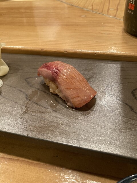 中盤に出てきたマグロ赤身や大トロはもちろん素晴らしいんですが、鯵が出た途端に二次曲線的にテンション爆上がり。肉厚な鯵と煮切りと長葱のハーモニーが最高すぎて口に含んだ瞬間から口角が上がりまくり。