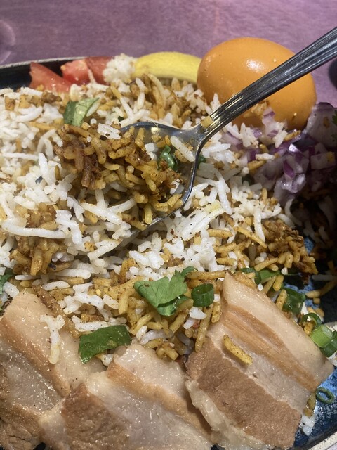 ここではビリヤニではなく、イスラム的には禁忌で邪道ともいえる豚肉を使った「ビリアニ」を専門的に出すお店。