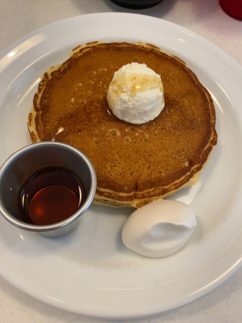 パンケーキは甘すぎず、そのままでも美味しいですが、メープルシロップとバターが絶妙なバランスでさらに美味しくなります!