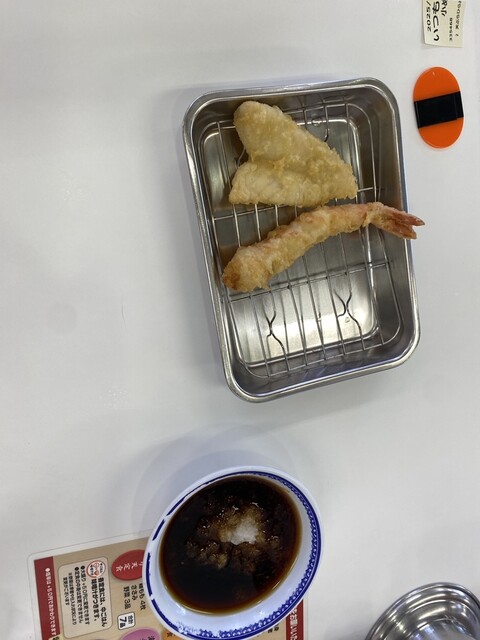 土曜日のお昼、食券を買うまで外で並びました。日傘、飲み物必須です!長い間待ってから、食券を買い、更にお店の中で椅子で待ちます。そしてやっと席に案内され、期待していた天ぷらを頂きました!雰囲気は大衆食堂ですが、揚げたてのサックサク、熱々の天ぷらを一本ずつ、食べた頃合いをみて次を出してもらえる、丁寧なサービスです。まるで銀座の高級な天ぷら屋さんのようです。セットメニューに単品を選ぶのも楽しいです。フレンドリーな店員さんで活気があり、楽しく頂きました!