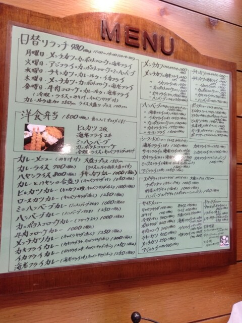 ハンバーグ、カレー、カツレツ、生姜焼き、フライ、パスタ。グラタンはなかったけれど、洋食で思いつくもの一通りあります。これは普通なら決められないお店ですね。