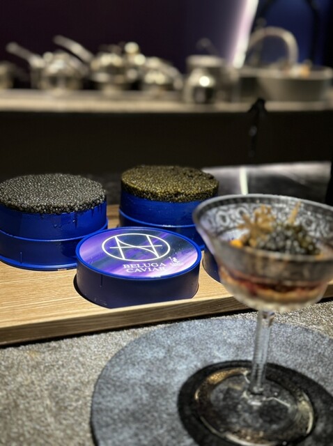 プチプチとした食感のカルーガキャビアと濃厚でクリーミーで