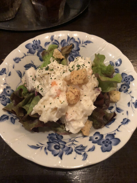 危うくポテサラを食べるタイミングを無くしそうになる前に1口食べると、店主のこだわりのポテサラが美味しい。