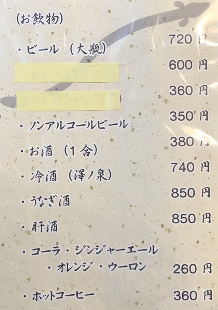 ドリンクメニュー(2023年5月現在)