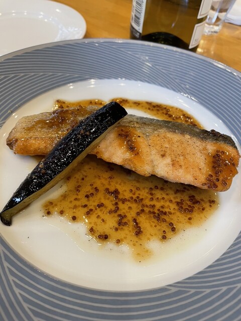 メインは私はサーモンのソテー。パリッとカリッとどうやったらこんなにうまくソテーできるんだろう。ハニーマスタードのソースも甘くて幸せな味。