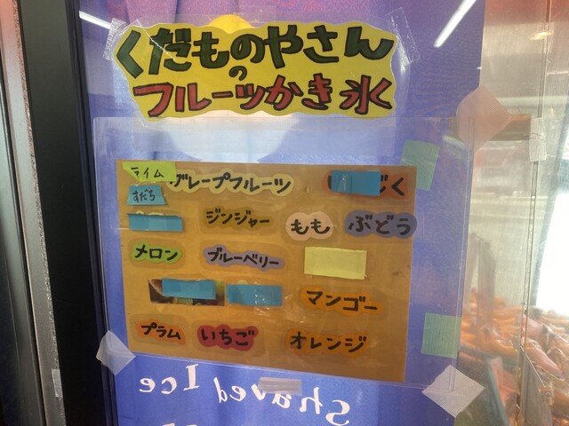 ここのかき氷シロップの甘ったるい味がなくフルーツ本来の甘さの方が強いので同じもの食べるならここで車の中ですずみながらいただきます