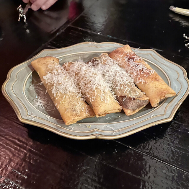 ポルチーニ茸のクリーム春巻きフォアグラ節かけ(2022年8月)