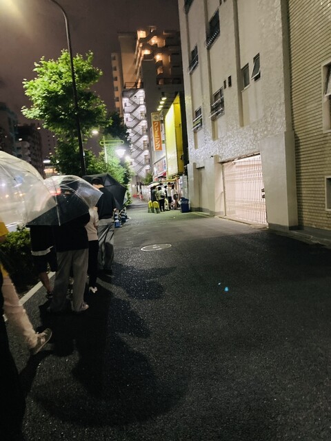 22時前に長蛇の列に突撃。雨もぱらつくなか、駅からも離れてるのに相変わらずすごい人気だな。
