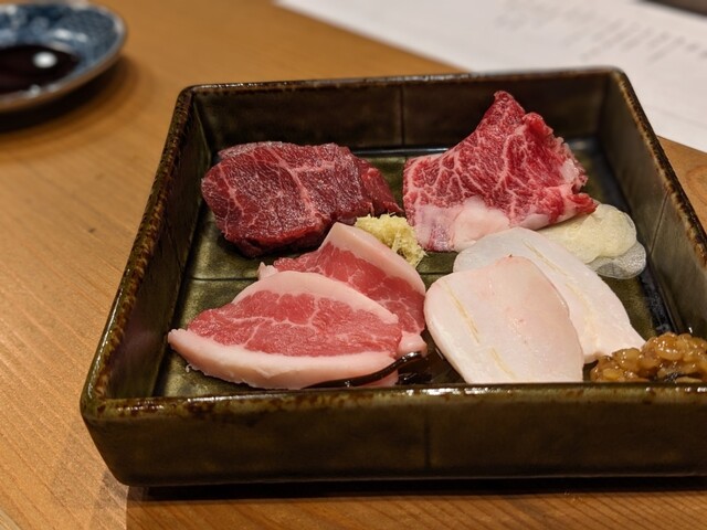 どっちも最高。レバは特製醤油、ハツはごま油塩で。特にレバは新鮮な牛レバより私は好きでした。ぷりっとコリっとしながらもねっとり、臭みは全くなく、おかわりしたいくらいにたまらん刺身でした。