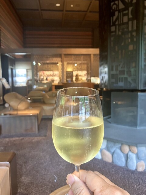 陽が暮れる前に、食事を始めました。まずはシャンパンから。料理とワインのペアリングを楽しみました。ここでも北海道の野菜を美味しくいただきました。北海道のワインもいろいろあり、おすすめのものをセレクトしました。