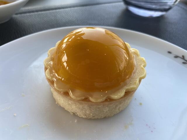 薄いタルトの中に、マンゴーピューレ、シークヮーサーチョコレート、バターっぽいクリームという構成。