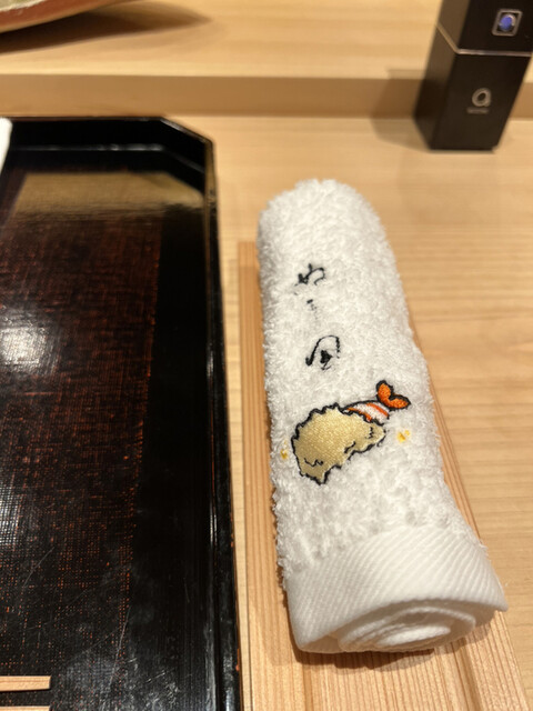 カウンター席のみ8席、凛としたお店の雰囲気と若き大将とお店の方々の笑顔に少しホッ✨可愛い柄のおしぼりふきふき至福のランチスタート